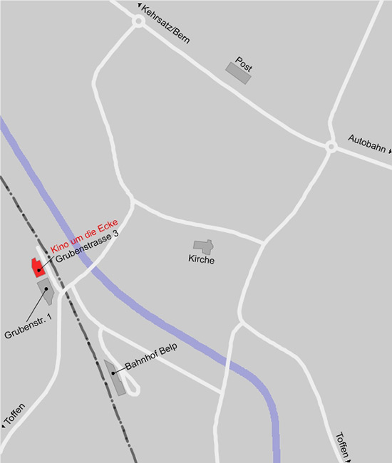 Die Einfahrt zum Parkhaus befindet sich (von Belp Richtung Toffen) 40 Meter nach dem Bahnübergang links.